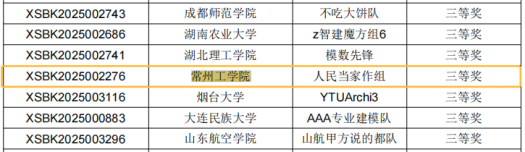 赛项三(建设工程计量与计价应用)实现历史性突破:22级工管专业周敏、邓安尉与23级工管专业尹梦莹组成的“常工筑算先锋”团队(指导教师:张晨阳、李健男),以及22级建筑专业吴静、22级城工专业杨浩、宋西楠组成的“精算龙鳞队”(指导教师:张晨阳、李健男),不仅填补了我院在该赛项多年“零参赛”的空白,更分别斩获二等奖和三等奖。