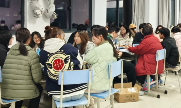 活动在“冬日祝福卡”环节温情落幕。同学们拿起笔,将对好友的牵挂、对学业的期许、对冬日的美好祝愿细细书写在卡片上。有的送上暖心问候,有的写下励志话语,还有的绘制可爱插画,一张张承载着真挚情感的祝福卡在同学间相互传递,让冬日的暖意流淌在每个人心中。活动尾声,全体参与人员合影留念,定格下这份温馨而难忘的冬日记忆。