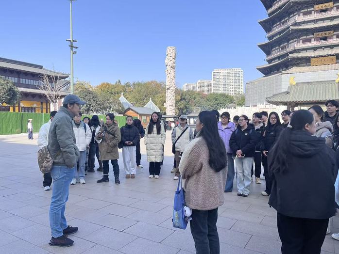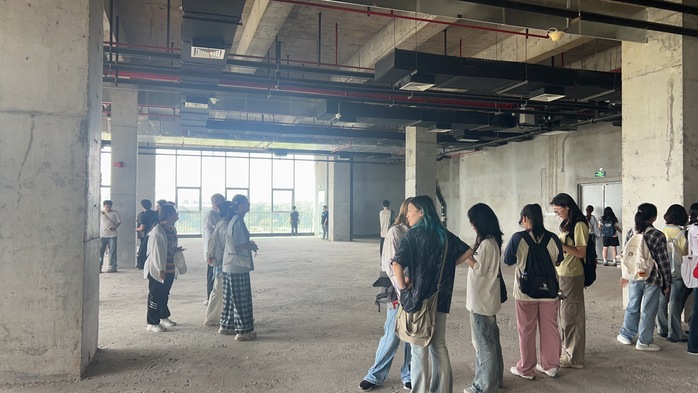 9月23日,师生共同走进常州高新大厦,在工程师带领下,逐层参观了塔楼核心筒、裙房商业空间、地下室设备用房、避难层及屋顶停机坪。学生得以在真实超高层建筑中,感受空间尺度、验证技术策略,深化了对复杂建筑系统整合的理解。企业设计师、校友李澜还与学弟学妹们分享了职业发展经验,解答了从学业到工作的各种困惑。